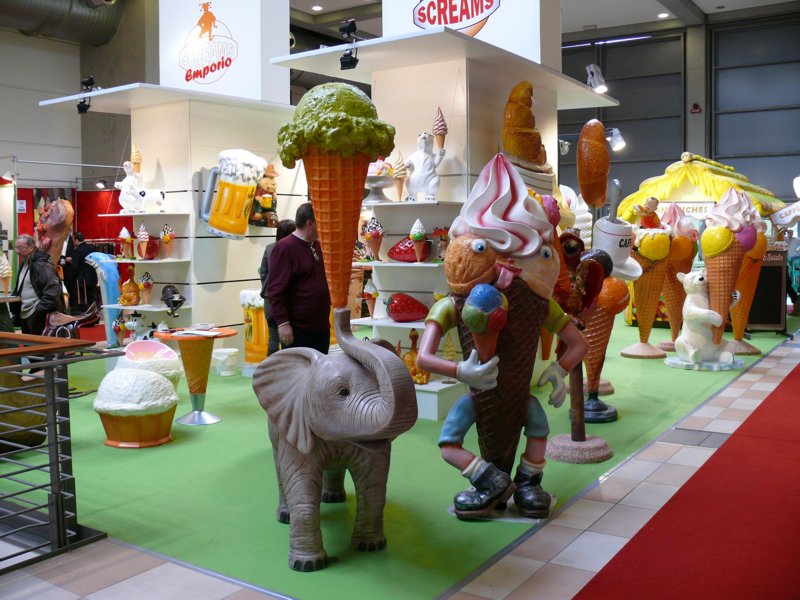 Zde se již dostáváme do oblasti trpaslíkového kýče ve kterém je klišé tvarů ještě navíc podporováno vydatnou a křiklavou barevností. Ale pro záměr upoutání dětských pohledů je to již dlouhou dobou odzkoušený účelový prostředek a tak bývá tento druh zboží pokaždé na SIGEPu pokaždé hojně zastoupen.