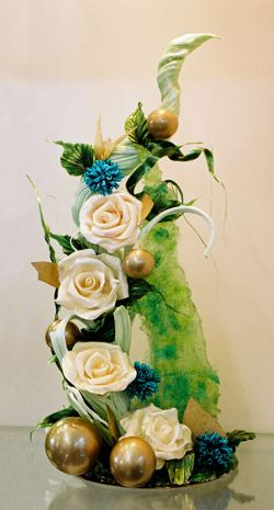 Pokud je mi dovoleno, pak bych velmi ráda projevila svoji radost se slečnou Hadnagyovou Ivetou, ve své práci předčila svoji kolegyni, a tak jsem na ni velmi pyšná. Vždy mám neskrývanou radost u mladých talentů. Její práce byla vzdušná, křehká a dort byl uměleckým propracovaným dílkem. Blahopřeji Vám, Ivetko!!! Samozřejmě, že vůbec bylo na výstavě dosti skvostů, Motýlí žena byla v pravdě avantgardní dílo. Nicméně práce Ivetky byla obšírná, jen malá poznámka, poněkud se vysmeklo z rukou aranžování na stole.
