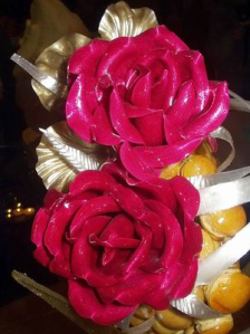 Dovoluji si poukázat na práci pana cukráře z Hiltonu, zde bylo několik stylů a poněkud méně ladily dohromady, také je zde stagnace ve výtvarném ztvárnění – chtělo by to něco nového – to je mé vidění, ovšem onen dort byl velmi půvabný. Jenže velký, již na Olympiádě IKA jsme si mohli povšimnout, že je presentace dortů ve velikosti batulů. Přesto byla jeho presentace ukázkou novějšího stylu. Přesto svoji disciplinu naplnil, ba použil své půvabné povolání k dekoraci expozice. Pak už je to jen na výtvarném vnímání porodců. Neposledně, karamelová odvaha Eleny Shramkové je obdivuhodná, ale jak bylo řečeno – karamel je křehký, dojem skla. Zde nebyla presentována tak čistá práce, květy a lístky byly velmi hrubé. Shodou náhod mám s čím srovnávat – byla jsem na světovém šampionátu v karamelu v Lyonu – Sirha salon /a zde byla i soutěž Bocuse d´Or/. Neskutečně čistá a křehká díla cukrářských sklářů. Sladké umění je lásky hlazení!
